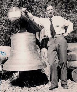 The bell’s original location was left of the current program lodge, where, among the trees, you can still see remnants of the rockery that housed the bell and a water fountain. It has, however, had multiple locations over the years.