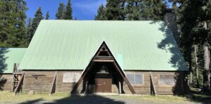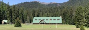 Construction of the first dining hall and kitchen began in 1935. Construction was completed in 1936, including a fireplace. Timber from the newly built roadway from the American River to Bumping Lake was offered and used for the construction.